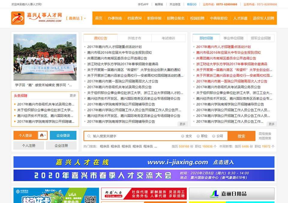 公司自主開發(fā)和運營的嘉興人才網(wǎng)( www.573job.com )和舟山人才網(wǎng)( www.93job.com )等平臺,經(jīng)過多年發(fā)展已經(jīng)成為當(dāng)?shù)刈罹哂绊懥Α⒆罹邫?quán)威性、最具招聘效果的人才網(wǎng)站之一。